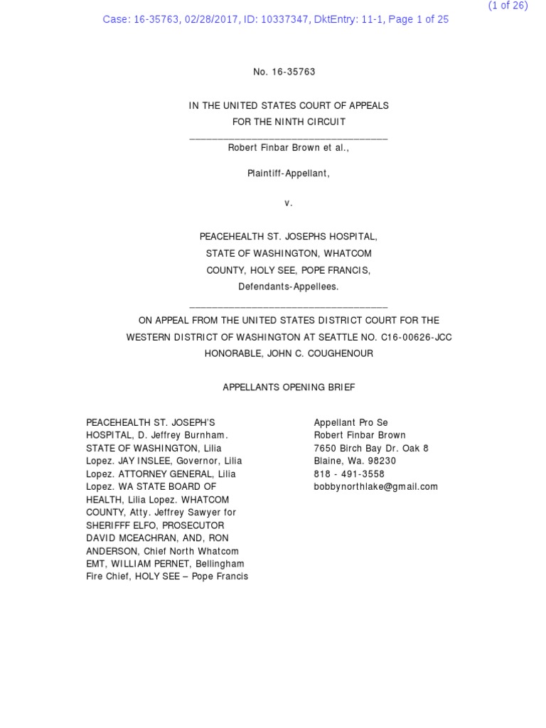 NINTH CIRCUIT U.S. COURT OF APPEALS OPENING BRIEF Summary Judgment Informed Consent